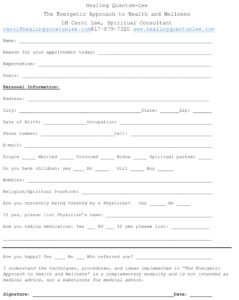 - Advanced Energy Medicine Assessment & Treatment Plan
